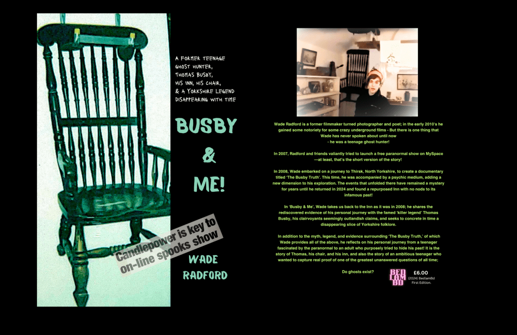 It had been my aim to cover the lore of ‘the Busby’, the investigation as a whole, and the shocking claims we’d made at the time, in an attempt to support ‘The Busby Stoop Inns’ legacy for a new generation. But, it became so much more – It became my story of an ambitious yet fragile teenager, who so believed in what he was doing, and tried so hard to make something of himself utilising the early forms of social media. I continued with this narrative because it is my wish that any young person (or older individual), lost or embarrassed by the stuff they are passionate about, may read ‘Busby & me’ and continue to be inspired, unapologetic and passionate about their own journey!